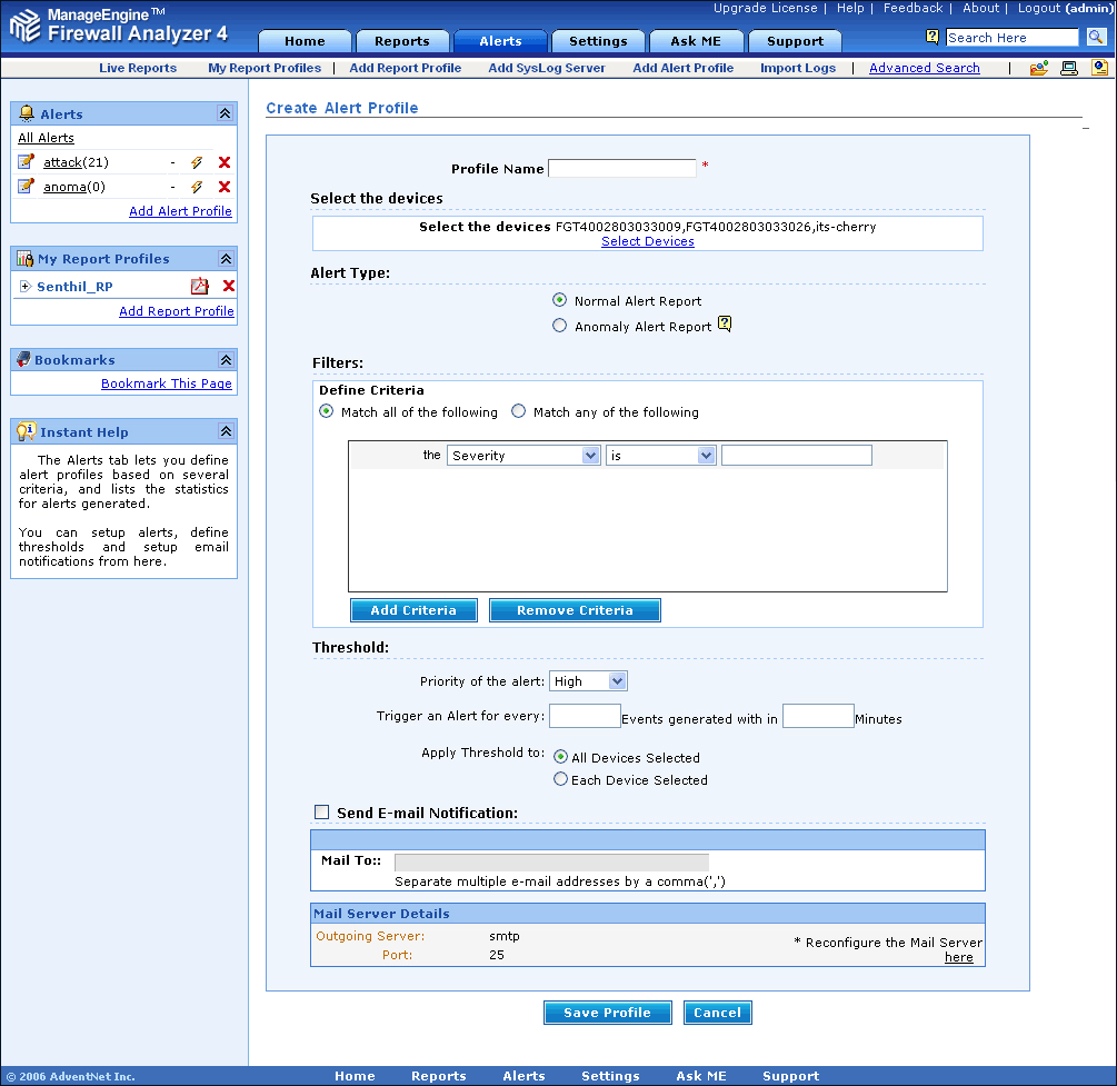 Alerts can be set up for detecting abnormal traffic behaviors or anomalies. Anomaly alert reports can be used for Network Behavioral Analysis (NBA).You can set the filters to detect anomalies, choose the threshold criteria to trigger