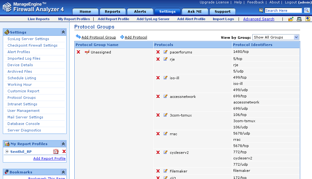 For example, HTTP, TCP/80, and UDP/80 are grouped under the