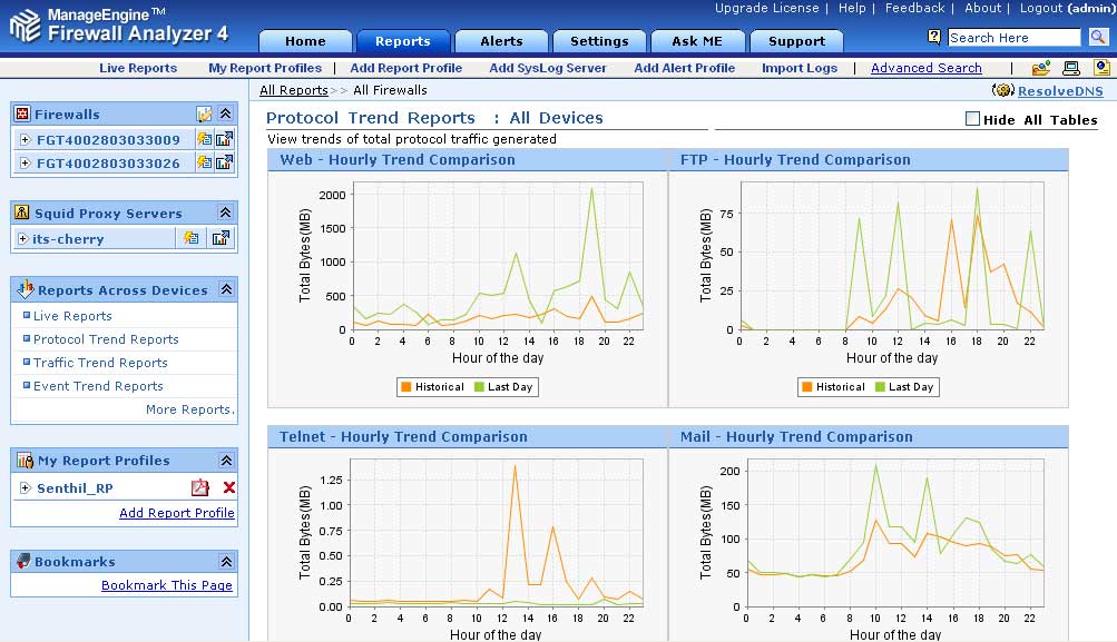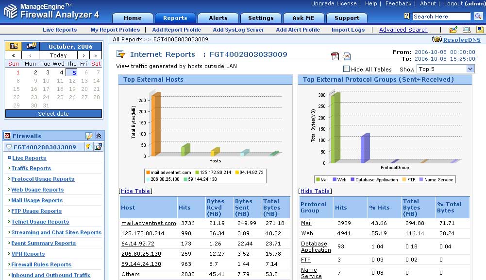 Mail, FTP,Telnet, Streaming and Chat traffic across each firewall.