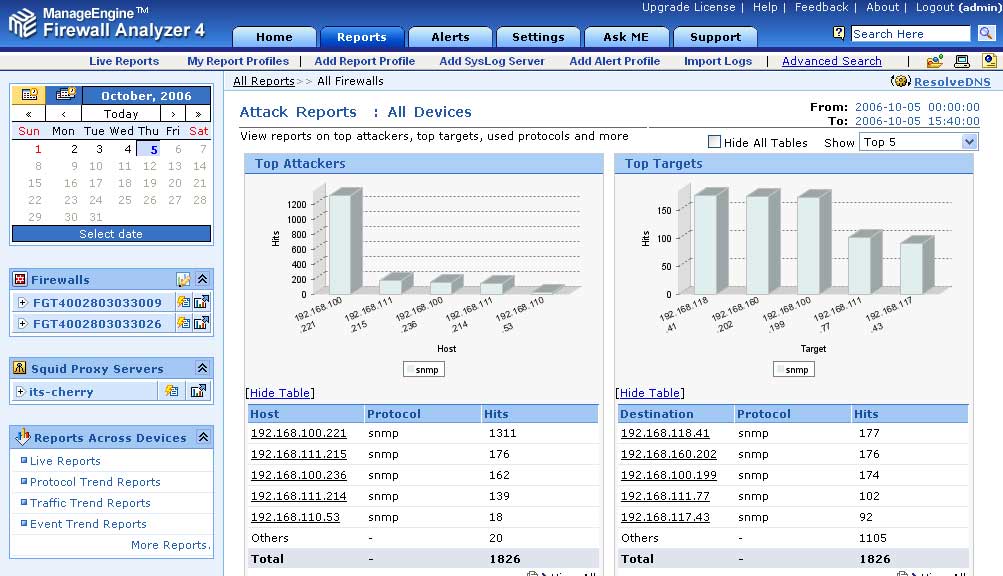 attacks, peer-to-peer attacks, etc. Reports include information on top